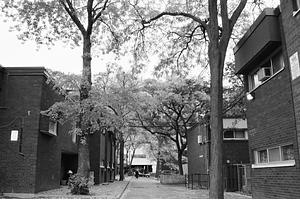 A Toronto hood looking lovely as hell in the fall; in B&W